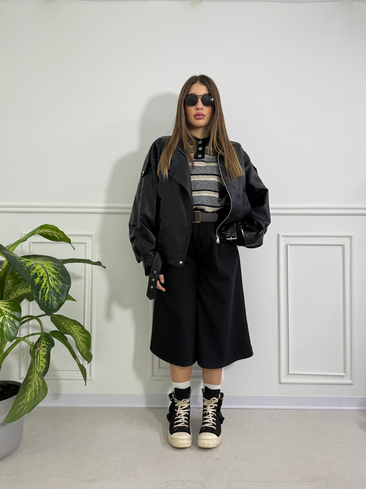 Il chiodo rock è una taglia unica e presenta un design oversize con una doppia chiusura e cintura in vita. Realizzato in ecopelle di alta qualità, è la scelta perfetta per uno stile unico e audace. Dai un tocco di grinta al tuo outfit con il chiodo Rock !