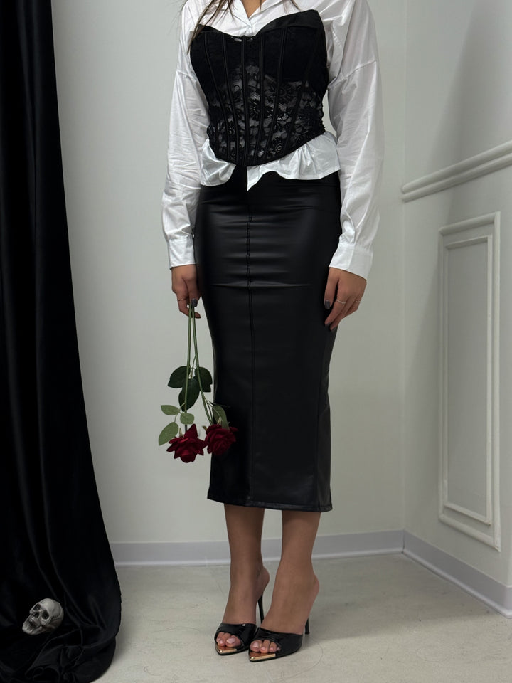 Esalta la tua eleganza e femminilità con la Gonna Serena. Con il suo tessuto elasticizzato, si adatterà perfettamente alla tua silhouette. La taglia unica e lo spacco nel retro la rendono adatta a ogni tipo di fisico, mentre il materiale in ecopelle ti farà risplendere con stile e classe.