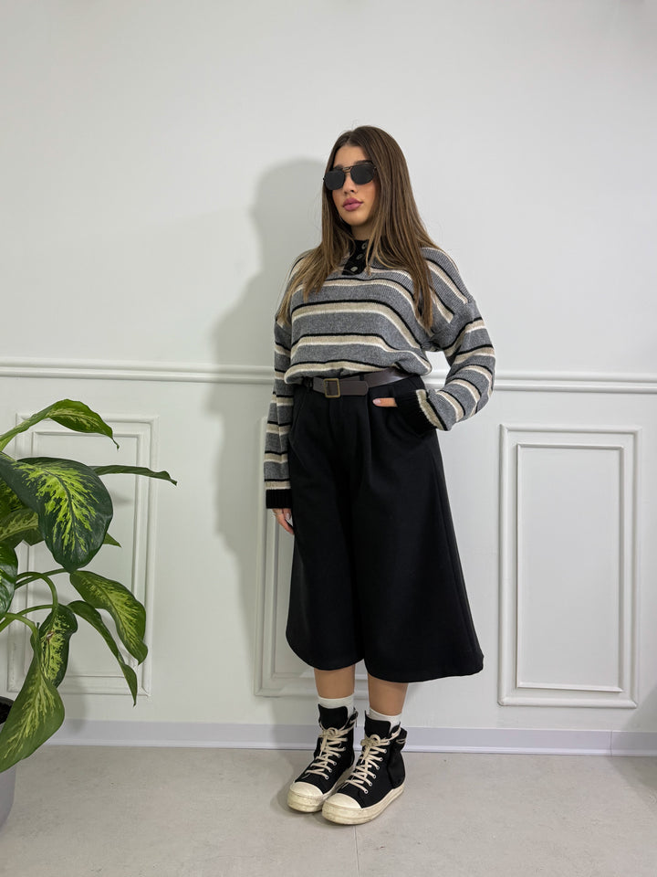 "Tuffati in un'atmosfera di stile e comfort con il nostro Maglioncino Astra! Realizzato con un morbido tessuto elasticizzato, presenta un caldo colletto e bottoncini come chiusura. La fantasia a righe rende questo maglioncino unico e versatile. Adatto a tutte le taglie."
