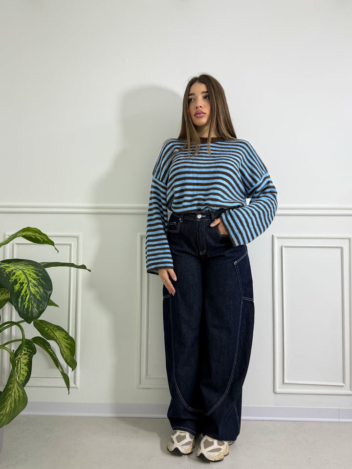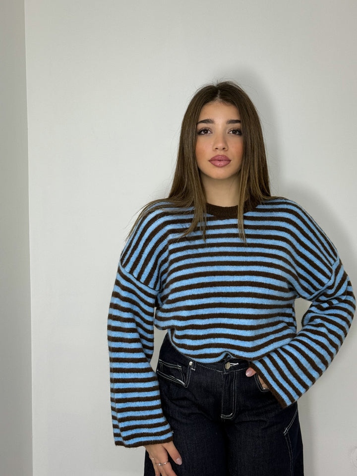 Aggiungi stile e comfort al tuo look con il Maglioncino Marta "azzurro". Realizzato in lana, questo maglioncino è caldo e elasticizzato per adattarsi perfettamente al tuo corpo. La manica ampia nel sotto è trendy e funzionale, offrendo libertà di movimento e un tocco di eleganza. Taglia unica.