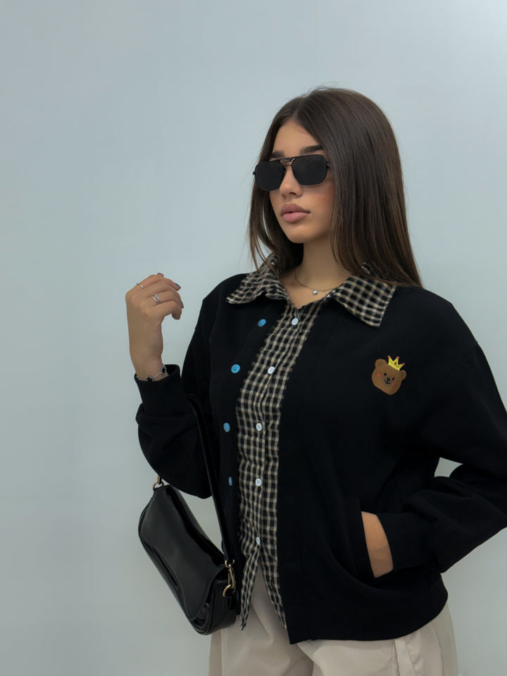 Aggiungi stile e comodità al tuo guardaroba con il nostro Maglioncino Teddy in tessuto elasticizzato. La lanettina di alta qualità garantisce un look elegante e un fit perfetto, mentre la camicia incorporata aggiunge un tocco di classe. Taglia unica per adattarsi a tutti i corpi.