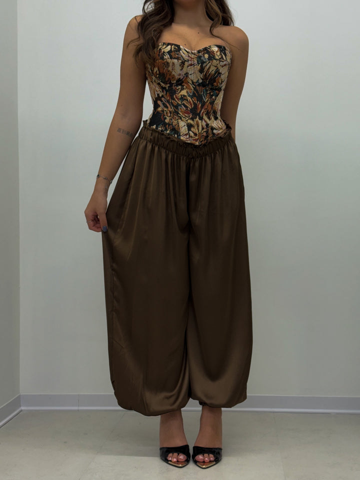 Esalta il tuo stile con il Pantalone Genevieve. Realizzato in raso, questo pantalone balloon ti regala un look elegante e comodo grazie all'elastico in vita e sulle caviglie. Adatto a tutte le taglie, è il must-have per una moda senza limiti!